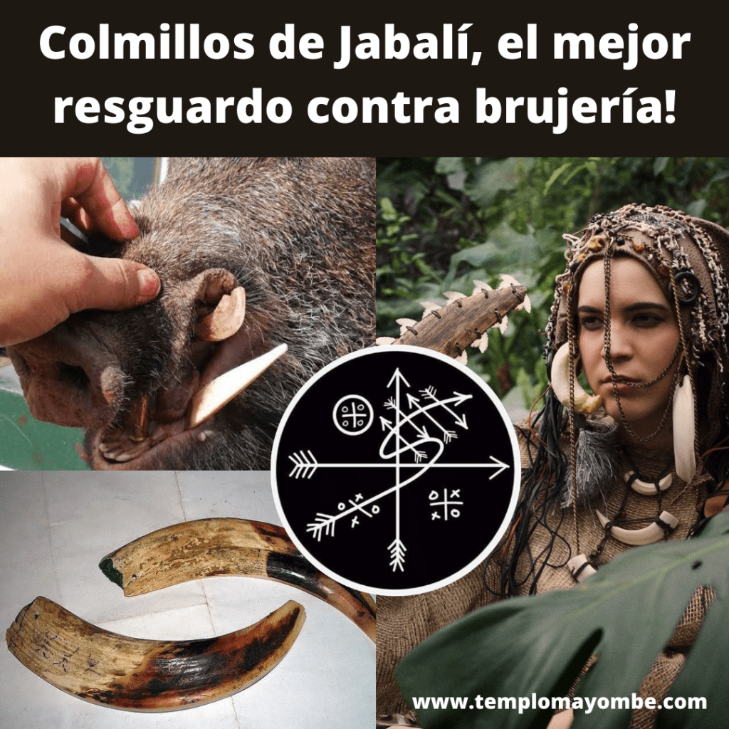 «El colmillo de jabalí fue un eficaz amuleto de defensa contra los hechizos y las brujas. Ahuyentaba el mal de ojo con lo que frecuentemente se les ponía en la muñeca a los niños para protegerlos. … El Colmillo de Jabalí también fue denominado «ALICORNIO» y solía ser engastado en base de plata», en el palo Mayombe se carga con npolos o polvos de varios palos, se añaden polvos de varios huesos de animales, y otros muchos secretos, esto forma una de la mejores protecciones, en la cultura mexicana protege de brujería, atrae la energía, elimina la debilidad, entre las tribus indias representa valor, fortaleza y ayuda a vencer guerras, es una protección para todo la vida, si tú quieres un resguardo de esta clase puedes pedirlo y te lo preparamos de manera artesanal y personal, para que tengas un resguardo para toda la vida.