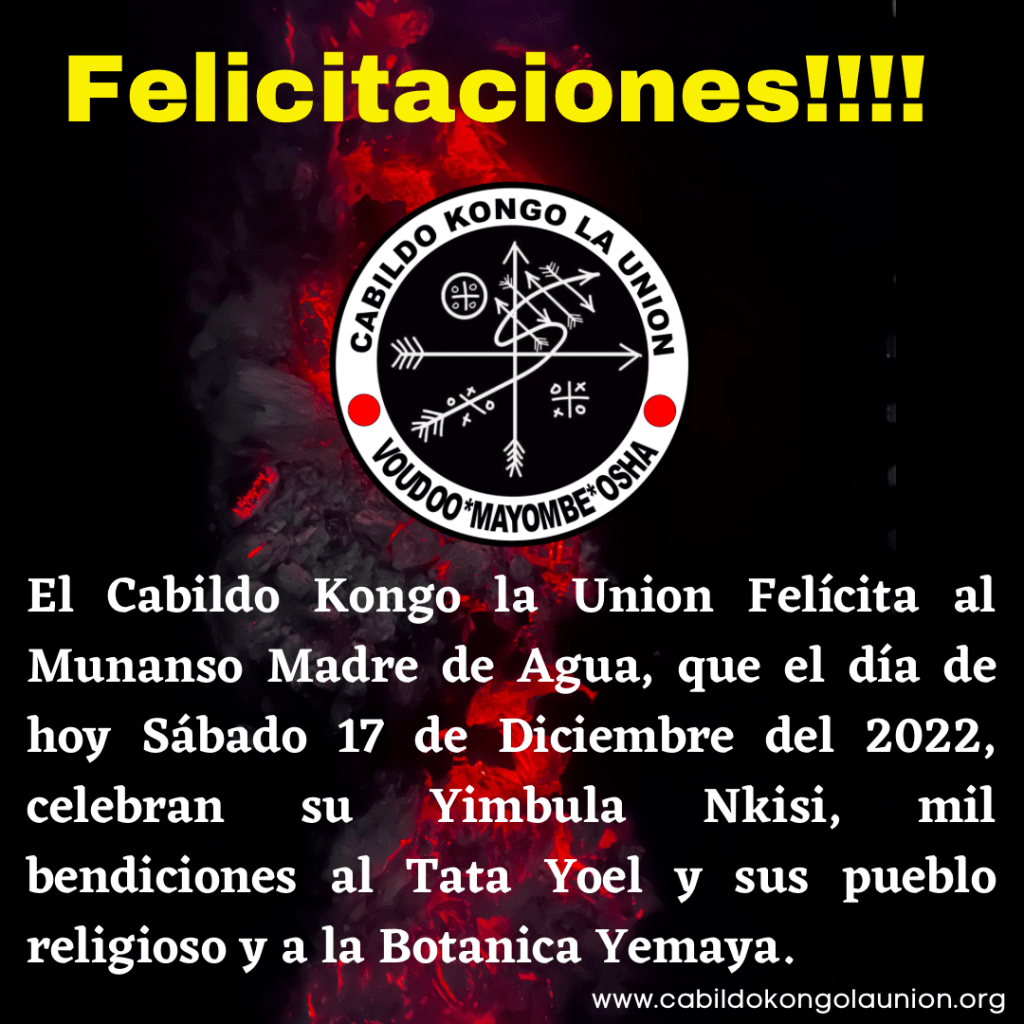 Muchas felicidades al Munanso Madre de Agua, que el día de hoy celebran su Yimbula Nkisi, muchas bendiciones a todo el pueblo religioso y al Tata Yoel por trasmitir y difundir la religión de Palo Monte.
