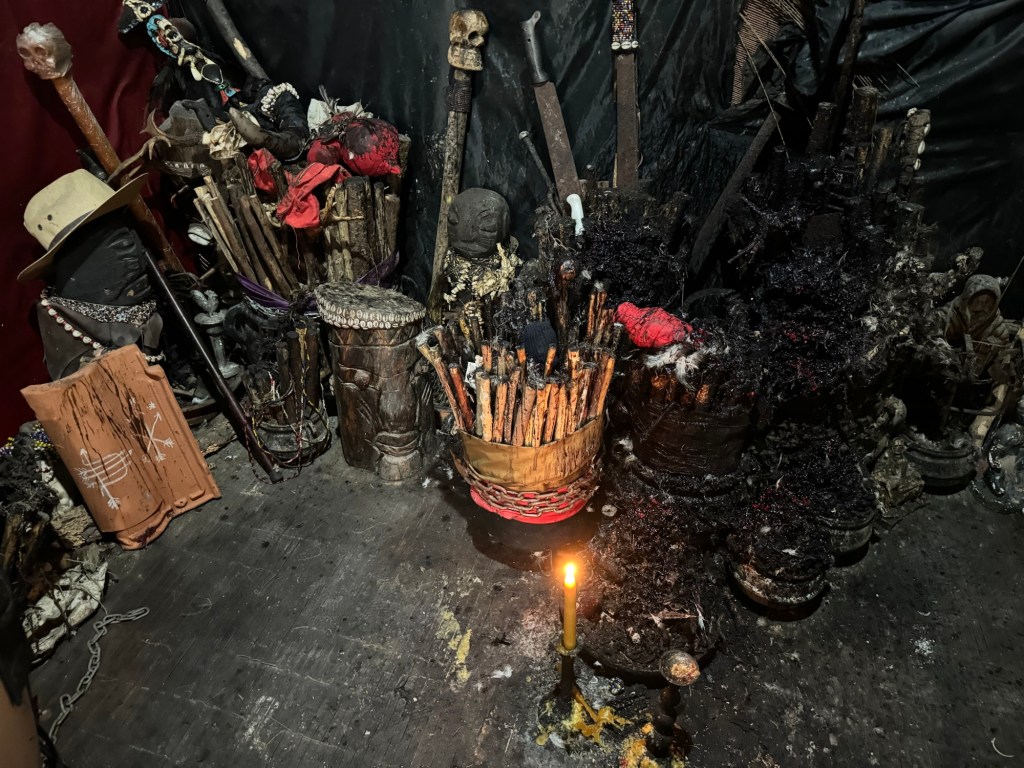 - Función religiosa: Es el centro donde se realizan los rituales, ceremonias de iniciación (rayamiento o juramento), y donde reside el nganga (o prenda), que es el caldero o recipiente sagrado que contiene los elementos espirituales y materiales para la conexión con el nfumbe y los mpungos. La «casa» se refiere tanto al lugar físico como al linaje espiritual y la agrupación de practicantes bajo un Tata Nganga (sacerdote) o Yaya Nganga (sacerdotisa).